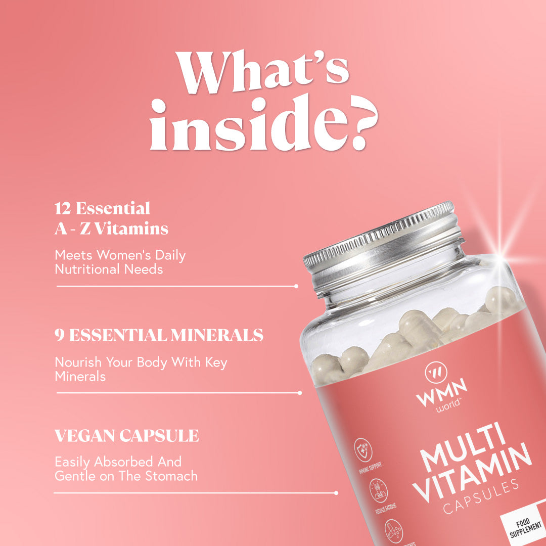 دعمي مناعتكِ وطاقة جسمكِ وصحتكِ العامة بمزيج متكامل من الفيتامينات والمعادن الأساسية. تم تصميم كبسولات متعددة الفيتامينات لتغذية جسمكِ بالعناصر الغذائية التي يحتاجها لتشعري بالصحة والنشاط يومًا بعد يوم.